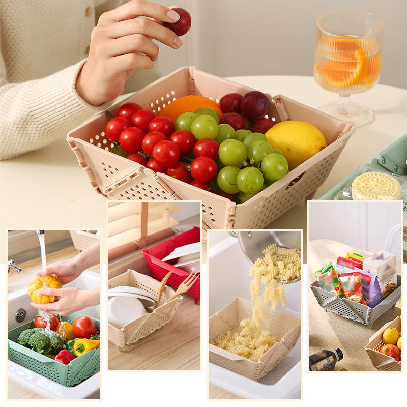 Служи както като сгъваема кошница за съхранение, така и като кошница за отцеждане!