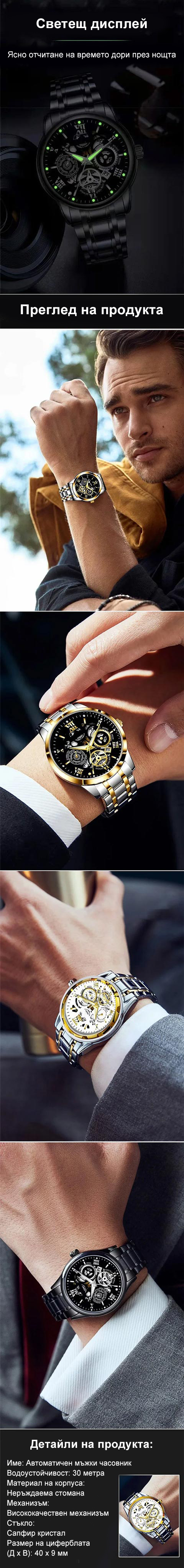 🔥Мъжки водоустойчив римски ажурен автоматичен механичен ръчен часовник⌚